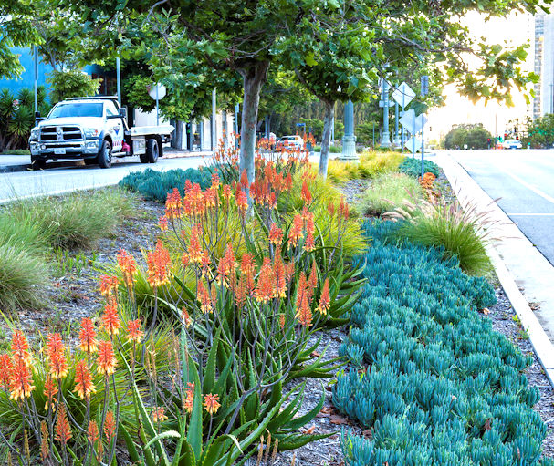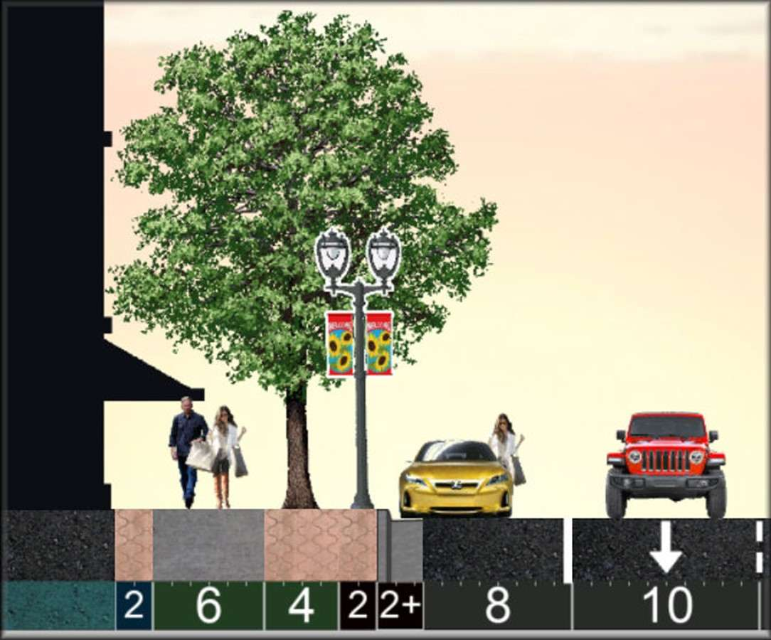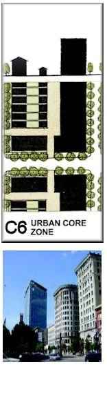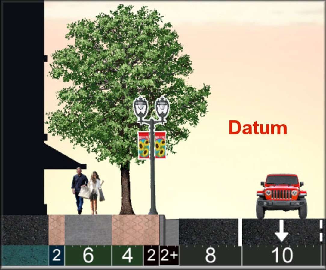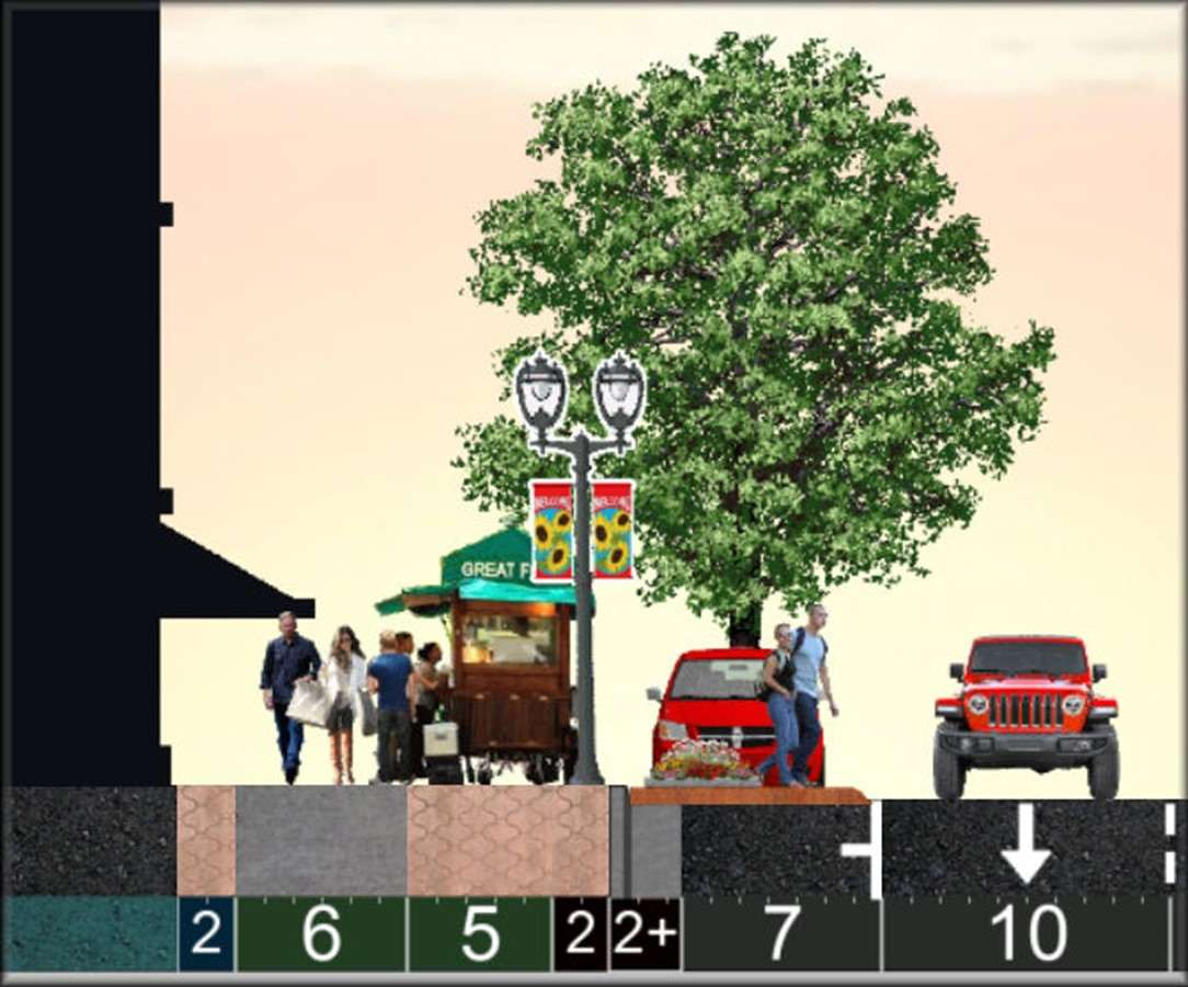 Trees: Many and large, due to Silva Cells or root trenches. Within 10-ft of cars. Buildings: Many within 5-ft of sidewalks. Significant residential. |