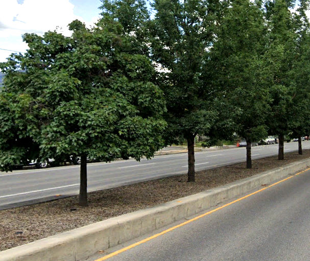 Trees: Many, but small due to species or constrained roots. Within 10-ft of cars. Buildings: Many within 5-ft of sidewalks. Significant residential. |