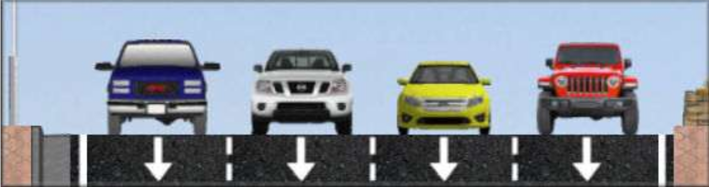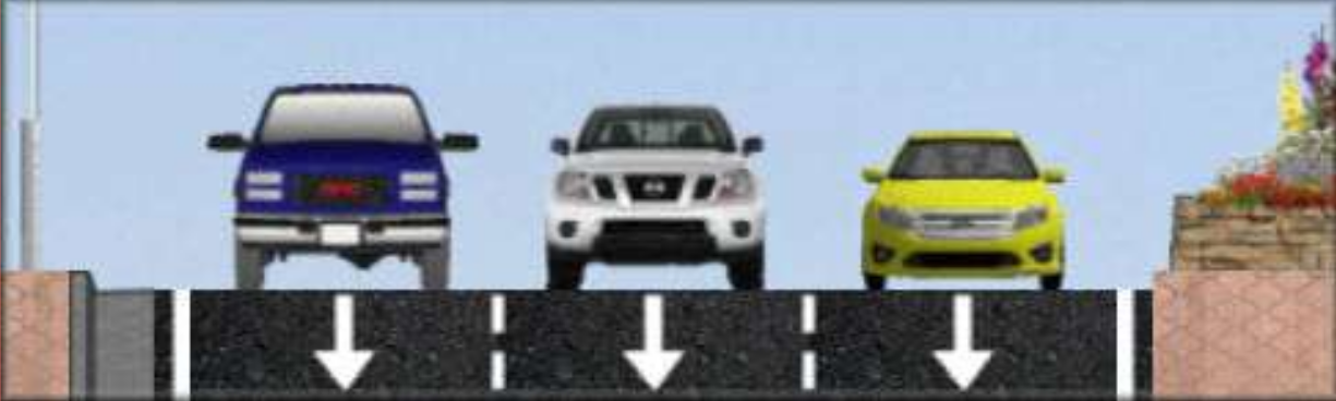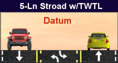 Stroad Datum: Wide shoulders with few if any parked cars. If you show a parked car, StreetPlan interprets this as “significant demand for parking” (probably greater than 50%). If parking is allowed, but little demand, better to show empty. |