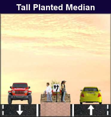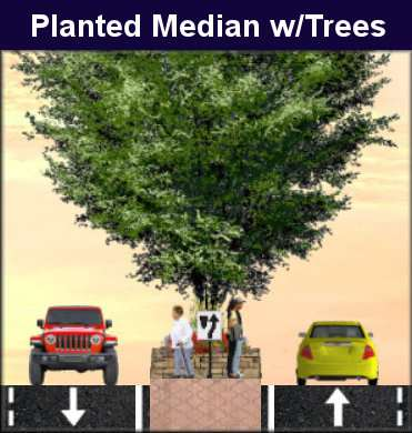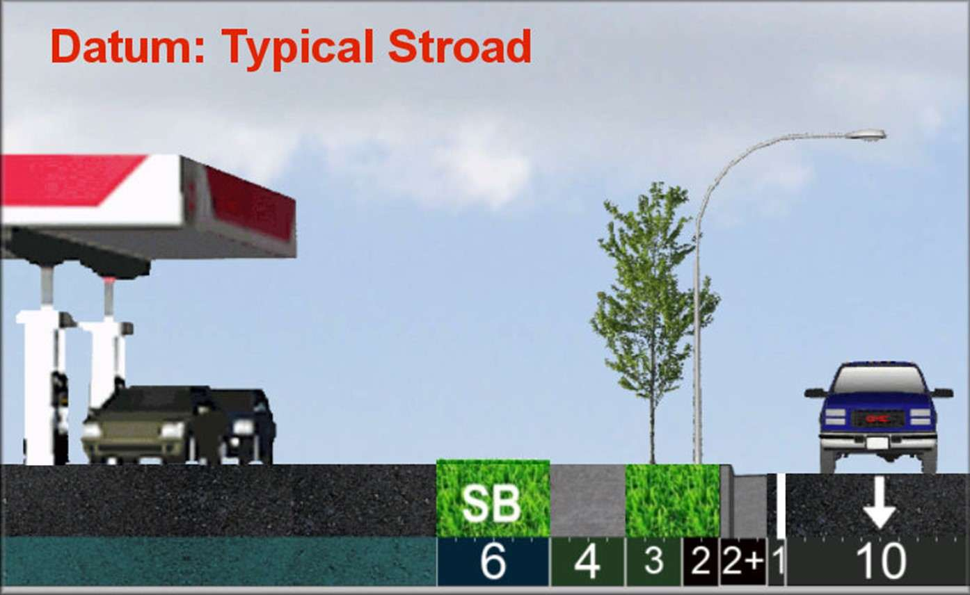 depict common median situations and their effect on speed relative to a typical 5-lane Stroad.